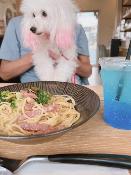 近くのカフェにランチに行きましたよ♪